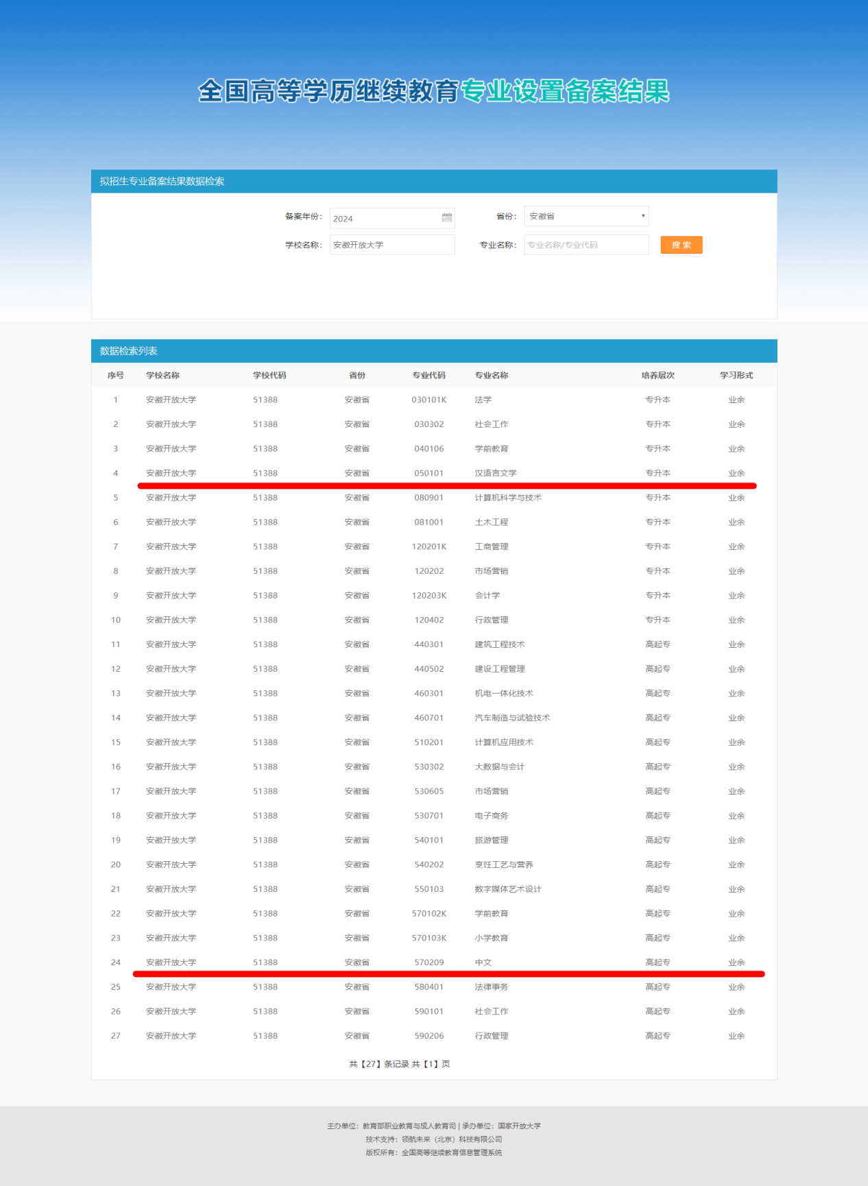 目前,高等学历继续教育招生专业共计27个,其中专升本专业10个、高起专专业17个。此次成功新增了2个高等学历继续教育专业,将进一步丰富学校的专业设置和课程体系,标志着学校在专业建设和人才培养方面的不断创新和发展。未来,学校将牢固树立新发展理念,依托安徽继续教育网络园区,持续推进省级高等学历继续教育改革示范基地建设,充分发挥远程化教学优势,探索构建服务全民终身学习的教育体系,为社会经济发展培养适用人才。